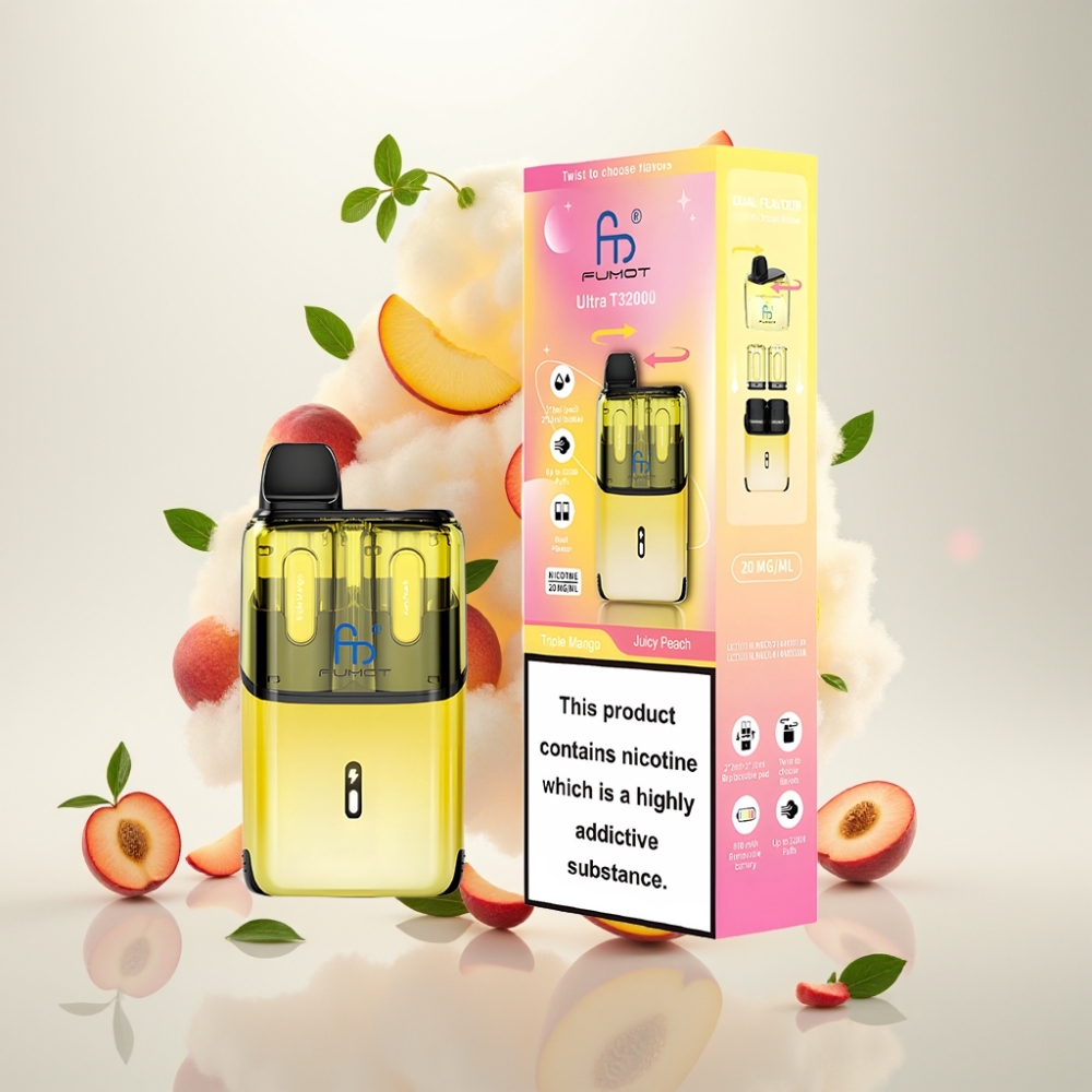 فوموت الترا Fumot Ultra T32000 مزاج ثلاثي - مانجو لذيذ وخوخ عصيري (32000 نفخة، 24مل، شحن سريع)