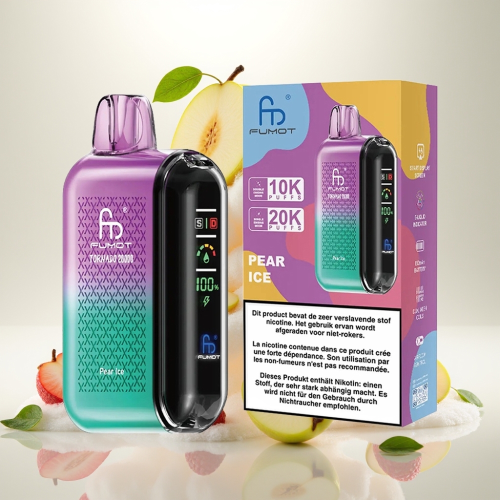 فوموت تورنادو Fumot Tornado 20000 نفخة - بنكهة الكمثرى والثلج - شاشة ذكية - بطارية 850 مللي أمبير