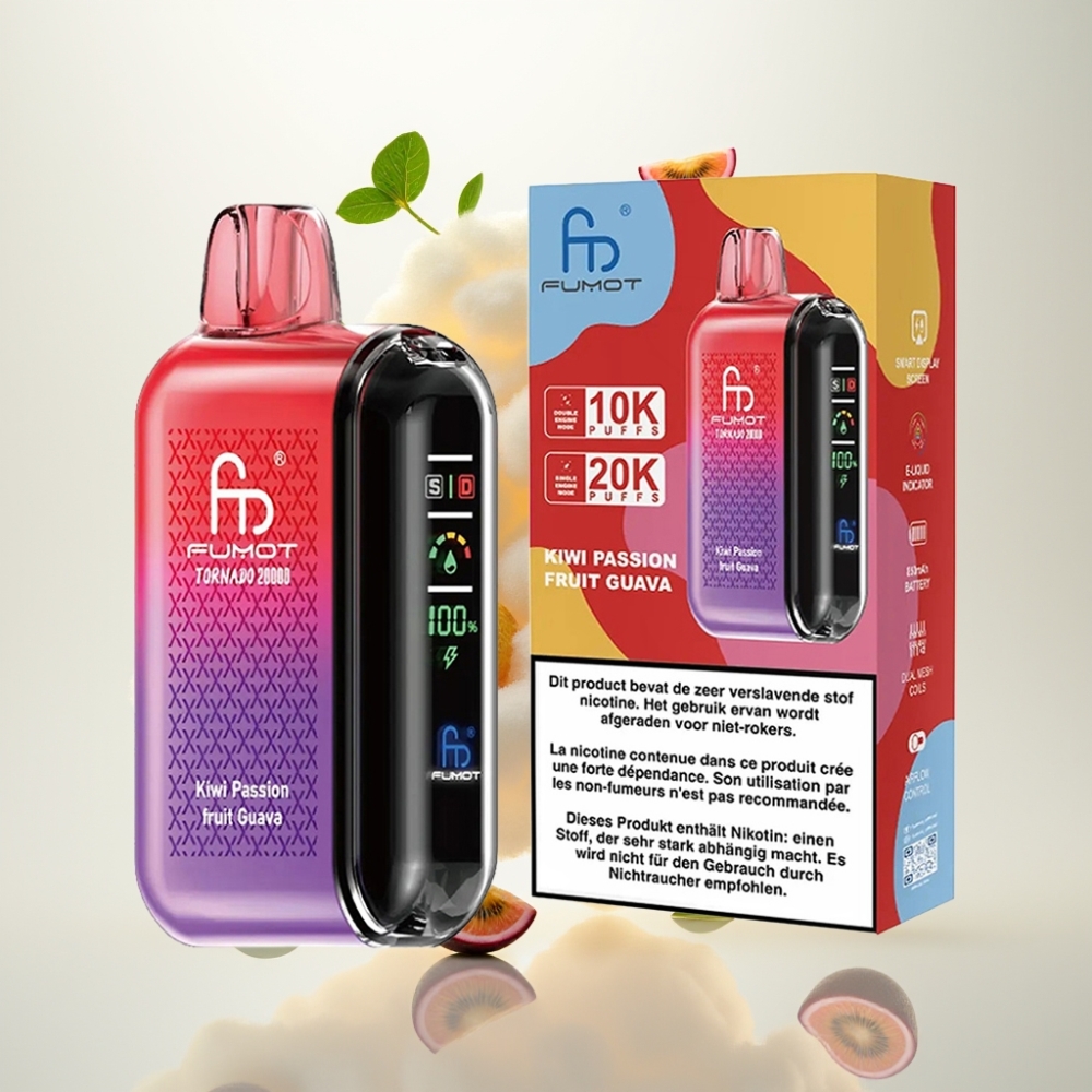 فوموت تورنادو Fumot Tornado 20000 نفخة - كيوي باشن فروت جوافة - بطارية 850 مللي أمبير وشاشة ذكية