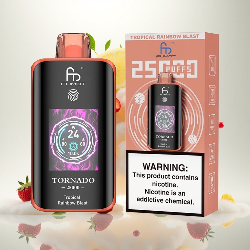 فوموت تورنادو Fumot Tornado 25000 نفخة شاشة عالية الدقة بطارية 700 مللي أمبير عصير 20 مل نكهة قوس قزح استوائي