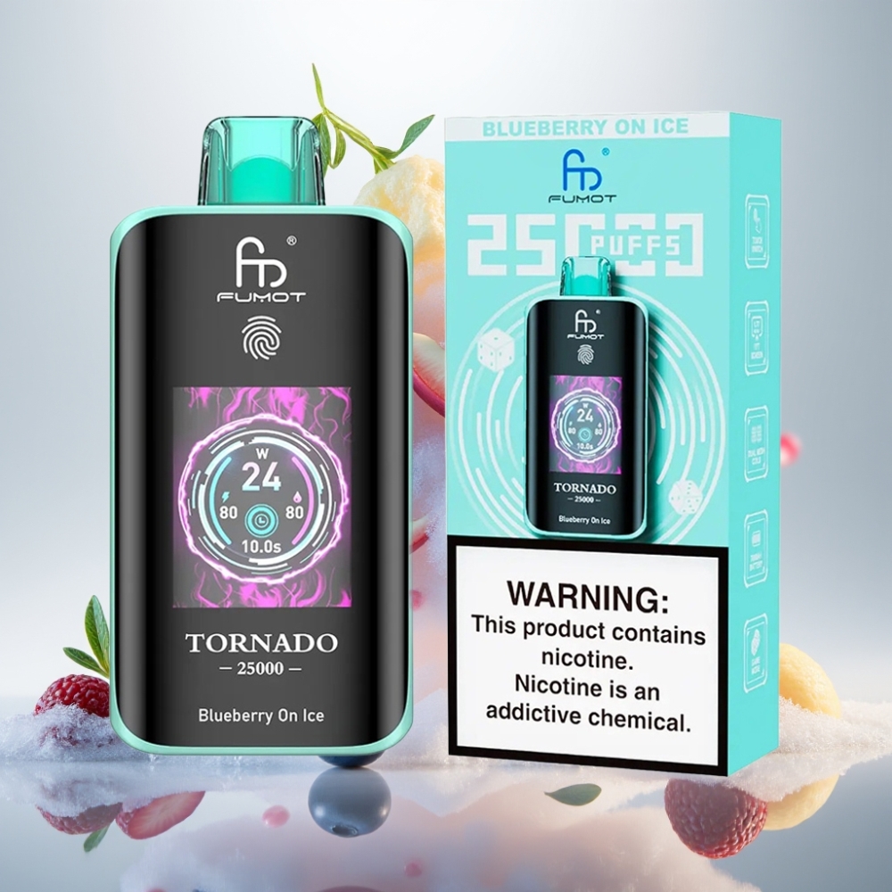 فوموت تورنادو Fumot Tornado 25000 نفخة شاشة HD بطارية 700 مللي أمبير نوع-C توت أزرق مثلج