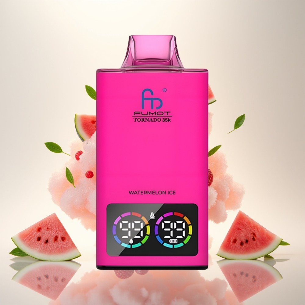 فوموت تورنادو Fumot Tornado 35K فايب قابل للتصريف - بطارية 700 مللي أمبير، إضاءة RGB، بنكهة البطيخ المثلج