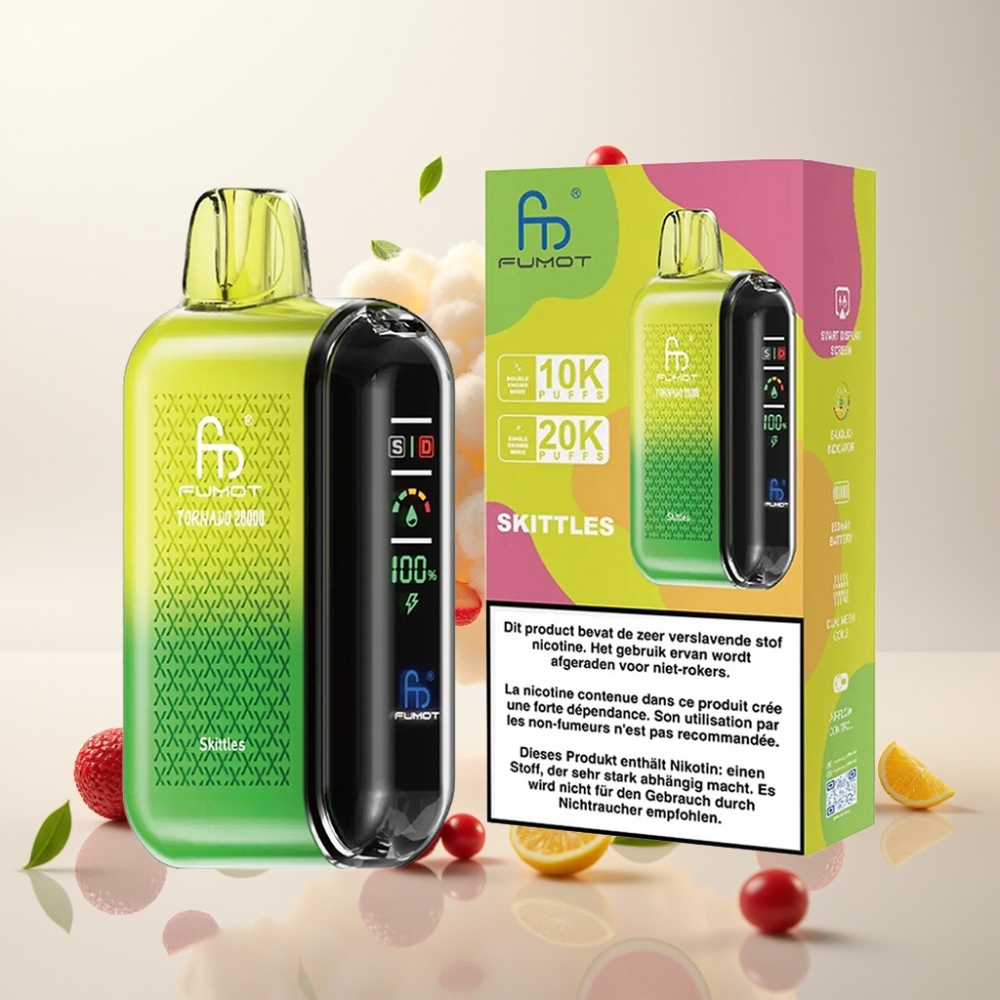 الرئيسية| جديد في| FUMOT| فومو تورنادو Fumot Tornado 20000 نفخة - سكيتلز، بطارية 850 مللي أمبير، شاشة ذكية